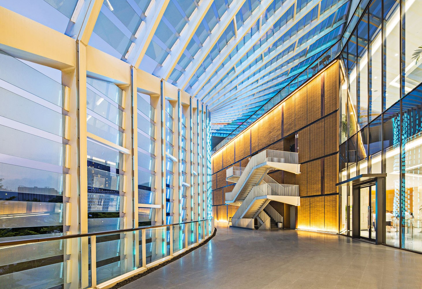 On the overall idea of "showing the charm of the night scene of the building and creating a new landmark of the night scene of Taizi Bay", the building structure is mainly expressed by green ecological lighting to improve the quality of the night scene of the building. Through the combination and adjustment of lighting design elements and LED technology, Combining the form of "three axes with one heart" and the spatial pattern of "running along the river and mountains" in Taizi Bay Exhibition Center, it shows the characteristics of architecture as "inheritance of water", "environment of mountains", "energy of the sea" and "personality of the city". People who are present deeply feel the concepts of "water" and "city" from the atmosphere and changes of flooding lighting on the facade of the building.